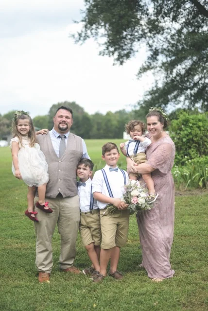 The Berneches got married here ten years ago, and came back to renew their vows and celebrate. Amanda was escorted down the aisle with their four children this time around—and yes, it was just as adorable as it sounds! Guests spread out throughout the gardens, playing yard games and enjoying each other’s company by willow and magnolia trees. The atmosphere was filled with love and laughter, and it was very clear that these two are just as in crazy for each other as the first time they said “I Do” at Dellwood!
